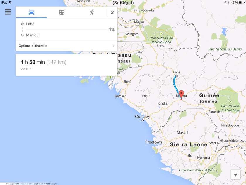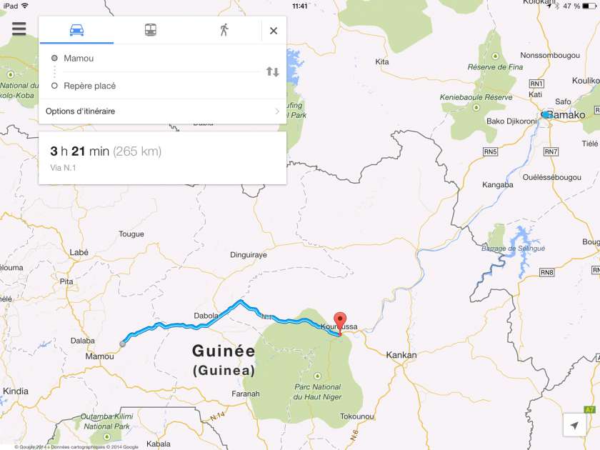La poussières, les ornières et les nombreux « nids de vaches » perdurèrent durant les 3 jours de traversée de la Guinée. Une fois de plus nous fûmes étonnés par la qualité des mécaniciens africains que ce soit à Labé ou à Mamou, les réparations devraient tenir (comme on dit ici si Dieu le veut) jusqu’à Bamako. La beauté des paysages nous font oublier la fatigue et les problèmes mécaniques.